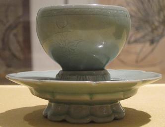 | Keywords: Cup and stand from Korea, early 12th century, stoneware with celadon glaze, HAA.JPG  en Cup and stand from Korea Koryŏ dynasty early 12th century stoneware with celadon glaze Honolulu Academy of Arts own Hiart photo 2012 Goryeo celadon in the Honolulu Museum of Art Korean stoneware Green cups Ceramic cups Cc-zero |