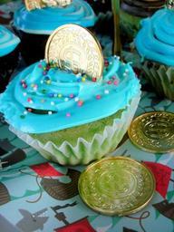 Keywords: cupcakes food sweet icing treat birthday coin gold pirate sprinkles pirates party