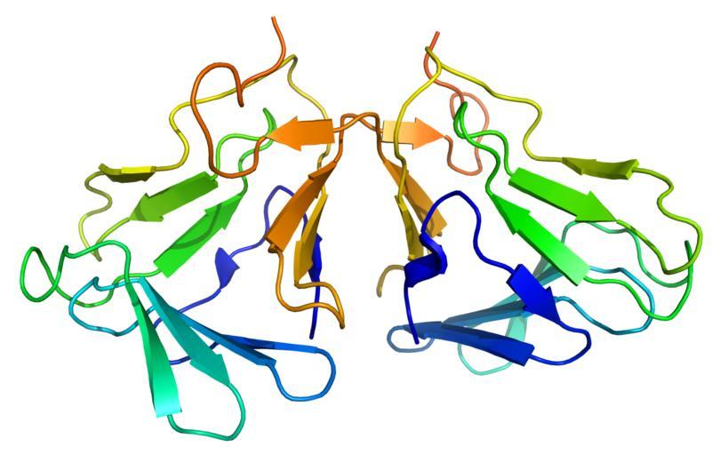 | Keywords: Curculin 2DPF.png Cartoon diagram of a curculin homodimer Orientation made to match figure in original source <br />Created using PyMOL http //www pymol org and GIMP Optimized with OptiPNG From PDB http //www rcsb org/pdb/cgi/explore cgi pdbId 2DPF 2DPF More information cite journal Kurimoto E Suzuki M Amemiya E et al Curculin exhibits sweet-tasting and taste-modifying activities through its distinct molecular surfaces J Biol Chem 282 46 33252 “6 2007 November PMID 17895249 10 1074/jbc C700174200 2008-07-10 Fvasconcellos Proteins |