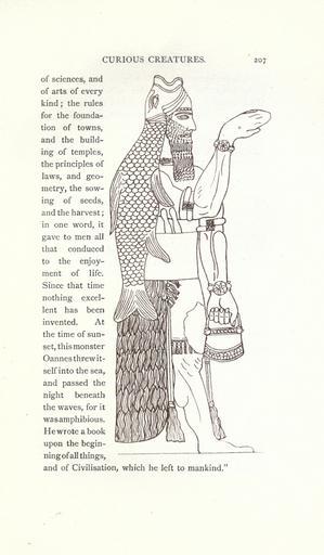 | Keywords: Curious creatures in zoology (14947830024).jpg CURIOUS CREATURES <br> 207 <br> of sciences and <br> of arts of every <br> kind ; the rules <br> for the founda- <br> tion of towns <br> and the build- <br> ing of temples <br> the principles of <br> laws and geo- <br> metry the sow- <br> ing of seeds <br> and the harvest ; <br> in one word it <br> gave to men all <br> that conduced <br> to the enjoy- <br> ment of life <br> Since that time <br> nothing excel- <br> lent has been <br> invented At <br> the time of sun- <br> set this monster <br> Cannes threw it- <br> self into the sea <br> and passed the <br> night beneath <br> the waves for it <br> wasamphibious <br> Rewrote a book <br> upon the begin- <br> ningof all things <br> and of Civilisation which he left to mankind 23574962 76213 32031 Page 207 Text http //www biodiversitylibrary org/page/23574962 1890 10 5962/bhl title 32031 Ashton John Biodiversity Heritage Library Curious creatures in zoology; with 130 illus throughout the text Monsters Are Real Animals University of California Libraries archive org bhl page 23574962 dc identifier http //biodiversitylibrary org/page/23574962 bhlMonstersRreal Halloween university of california libraries archive org bhlmonstersrreal Information field Flickr posted date ISOdate 2014-10-19 CC-BY-2 0 BioDivLibrary https //flickr com/photos/61021753 N02/14947830024 2015-08-25 20 50 19 cc-by-2 0 PD-old-70-1923 Curious creatures in zoology Photos uploaded from Flickr by Fæ using a script |