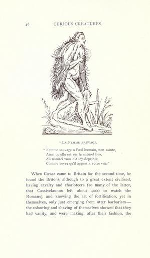 Keywords: Curious creatures in zoology (14948329223).jpg CURIOUS CREATURES <br> LA FEMME SAUVAGE <br> Fcmnic sauvage a 1'ceil humain non sainte <br> Ainsi qu'elle est sur le nature lieu <br> Au nature vous est icy depeinte <br> Comme voyez qu'il appert a votre vue <br> When Caesar came to Britain for the second time he <br> found the Britons although to a great extent civilised <br> having cavalry and charioteers so many of the latter <br> that Cassivelaunus left about 4000 to watch the <br> Romans and knowing the art of fortification yet in <br> themselves only just emerging from utter barbarism <br> the colouring and shaving of themselves showed that they <br> had vanity and were making after their fashion the 23574801 76213 32031 Page 46 Text http //www biodiversitylibrary org/page/23574801 1890 10 5962/bhl title 32031 Ashton John NameFound Cassivelaunus Biodiversity Heritage Library Curious creatures in zoology; with 130 illus throughout the text Monsters Are Real Animals University of California Libraries archive org bhl page 23574801 dc identifier http //biodiversitylibrary org/page/23574801 bhlMonstersRreal Halloween university of california libraries archive org bhlmonstersrreal Information field Flickr posted date ISOdate 2014-10-19 CC-BY-2 0 BioDivLibrary https //flickr com/photos/61021753 N02/14948329223 2015-08-25 21 56 35 cc-by-2 0 PD-old-70-1923 Curious creatures in zoology Photos uploaded from Flickr by Fæ using a script