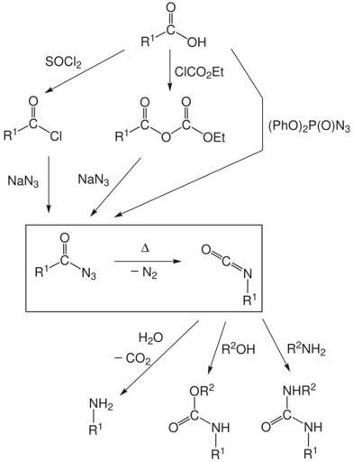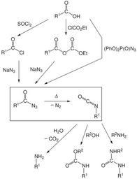 MAKE A MEME View Large Image Curtius rearrangement overview v1.svg en Overview of the Curtius rearrangement de à berblick der Curtius-Reaktion selbst erstellt mit ChemBioOffice 11 LinuxCLP 2011-08-12 Cc-zero Curtius rearrangement