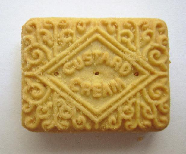 Keywords: Custard cream biscuit.jpg A British supermarket-brand custard cream biscuit Taken by me on 10 April 2006 Biscuits 2006-04-10 own assumed Loganberry~commonswiki