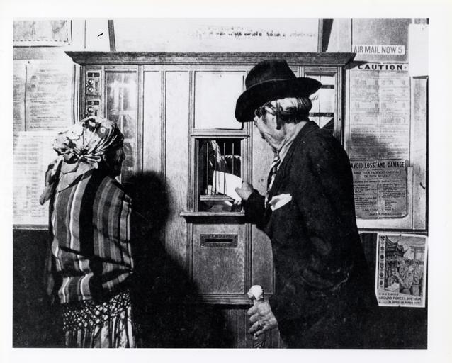 | Keywords: smithsonian institution smithsonianinstitution usps postoffice mail mail order bride mailorderbride black & white blackwhite historic woman man hay hat old newspaper black and white blackandwhite national postal museum nationalpostalmuseum mail across the commons mailacrossthecommons blackandwhite people black and white Description: A woman and man pose at the window of a small, fourth-class post office in an unidentified rural town. Creator/Photographer: Unidentified photographer Medium: Black and white photographic print Geography: USA Date: 1938 Collection: U.S. Postal Employees Persistent URL: arago.si.edu/index.asp?con=2&cmd=1&id=194294 Repository: National Postal Museum Accession number: A.2006-42 Description: A woman and man pose at the window of a small, fourth-class post office in an unidentified rural town. Creator/Photographer: Unidentified photographer Medium: Black and white photographic print Geography: USA Date: 1938 Collection: U.S. Postal Employees Persistent URL: arago.si.edu/index.asp?con=2&cmd=1&id=194294 Repository: National Postal Museum Accession number: A.2006-42 |
