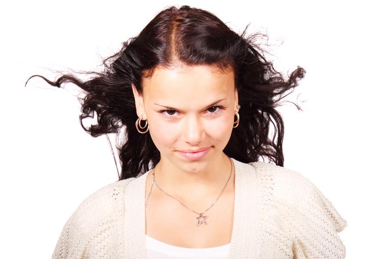 Keywords: cute face fashion female girl hair isolated look model people wind woman young