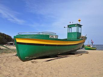 Keywords: cutter boat the barge sea the baltic sea the coast ship beach sand fishing field
