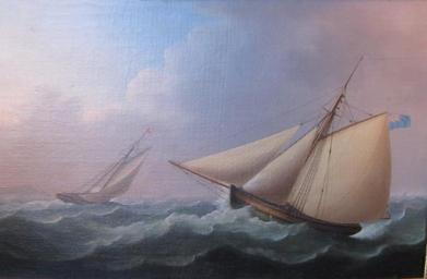 | Keywords: 'Cutters in Pursuit in a Stiff Breeze' by Thomas Buttersworth.JPG Cutters in Pursuit in a Stiff Breeze own Creator Thomas Buttersworth oil canvas cm object history exhibition history credit line accession number Cc-zero Thomas Buttersworth Cutters sailing 19th-century sailing ships in paintings |