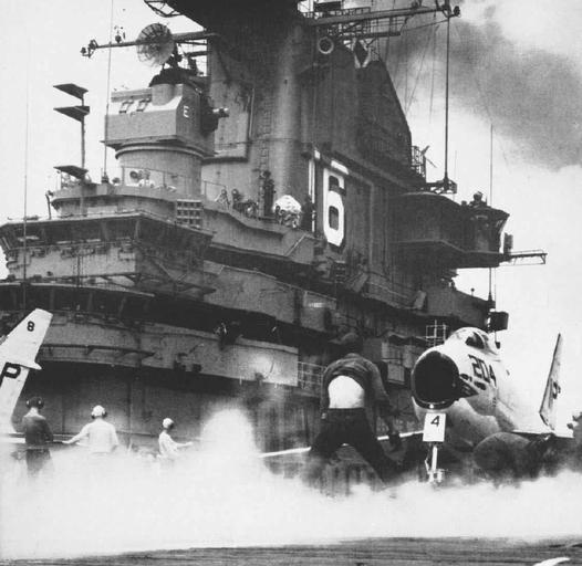 Keywords: CVA-16 island NAN7-60.jpg View of the island of the U S aircraft carrier USS Lexington CVA-16 in about 1960 Atop the bridge is the prominent Mk 37 gun director with Mk 25 fire control radar The primary flight control is visible on the aft end of the island Two North American FJ-4B Fury fighters of attack squadron VA-212 Rampant Raiders are visible on the flight deck VA-212 was assigned to Carrier Air Group 21 CVG-21 for three deployments on the Lexington to the Western Pacific between 1958 and 1961 U S Navy Naval Aviation News July 1960 http //www history navy mil/nan/backissues/1960s/1960/jul70 pdf 1960 USN PD-USGov-Military-Navy Aboard USS Lexington CV-16 North American FJ-4 Fury Aircraft carrier air operations Attack Squadron 212 United States Navy |