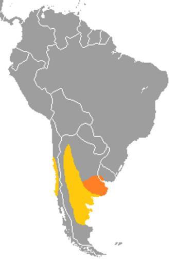 Keywords: Cyanoliseus patagonus range map.png en Cyanoliseus patagonus range map bg А еал на азп ост анение на патагонската кону а В жълто- айон на гнездене в о анжево - айон на сезонни х анителни миг ации own Izvora Cyanoliseus patagonus