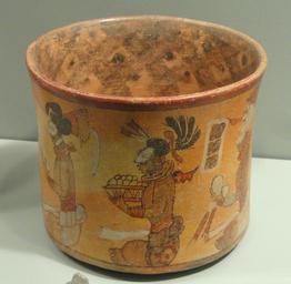 | Keywords: Cylinder Vase with tribute scene, 650-750 AD, Maya culture, Usumacinta River Drainage, western Peten lowlands, Guatemala, earthenware with polychrome slip - Gardiner Museum, Toronto - DSC01176.JPG Exhibit in the Gardiner Museum Toronto Ontario Canada This artwork is in the public domain because the artist died more than 70 years ago Photography was permitted in the museum without restriction Daderot 2012-10-16 16 37 55 Daderot cc0 cc0 Mesoamerican pottery in the Gardiner Museum Maya cylinder vases |
