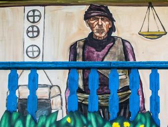 Keywords: cyprus ayia napa graffiti old man traditional costume balcony