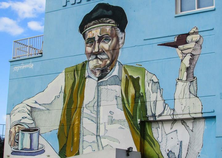 Keywords: cyprus ayia napa graffiti old man drinking coffee building