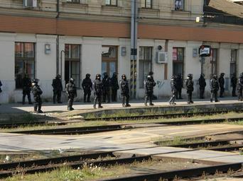 Keywords: Czech police 14.JPG Czech police Brno own 2008-04-28 Lukáš Malý uvolňuji dílo Police action in Brno hlavní nádraží Baník Ostrava - 1 FC Brno 28-th April 2008