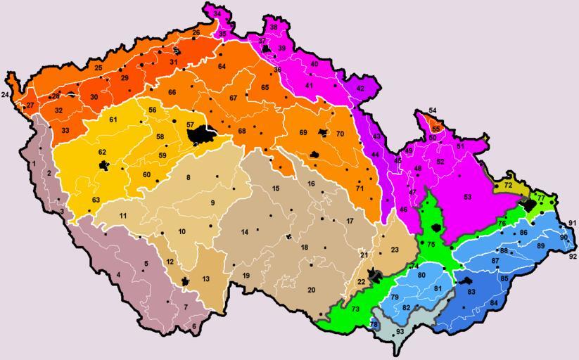 | Keywords: Czech Republic geomorphological division map level3 colour level4 number.png Mapa geomorfologického členění České republiky s barevně rozlišenými oblastmi podsoustavami a očíslovanými celky Map of geomorphological division of the Czech Republic with coloured geomorphological regions third-level division and numbered units fourth-level division geomorfologický systém geomorfologický subsystém GEOMORFOLOGICKÁ PROVINCIE geomorfologická subprovincie geomorfologická oblast geomorfologický celek Hercynský systém Hercynská pohoří ČESKÁ VYSOČINA Šumavská subprovincie Českoleská oblast 1 Český les 2 Podčeskoleská pahorkatina 3 Všerubská vrchovina Šumavská hornatina 4 Šumava 5 Šumavské podhůří 6 Novohradské hory 7 Novohradské podhůří Česko-moravská subprovincie Středočeská pahorkatina 8 Benešovská pahorkatina 9 Vlašimská pahorkatina 10 Táborská pahorkatina 11 Blatenská pahorkatina Jihočeské pánve 12 Českobudějovická pánev 13 Třeboňská pánev Českomoravská vrchovina 14 Křemešnická vrchovina 15 Hornosázavská pahorkatina 16 Železné hory 17 Hornosvratecká vrchovina 18 Křižanovská vrchovina 19Javořická vrchovina 20Jevišovická pahorkatina Brněnská vrchovina 21 Boskovická brázda 22 Bobravská vrchovina 23 Drahanská vrchovina Krušnohorská subprovincie Krušnohorská hornatina 24 Smrčiny 25 Krušné hory 26 Děčínská vrchovina Podkrušnohorská oblast 27 Chebská pánev 28 Sokolovská pánev 29 Mostecká pánev 30 Doupovské hory 31 České středohoří Karlovarská vrchovina 32 Slavkovský les 33 Tepelská vrchovina Krkonošsko-jesenická subprovincie Sudetská subprovincie Krkonošská oblast Západosudetská oblast 34 Šluknovská pahorkatina 35 Lužické hory 36 Ještědsko-kozákovský hřbet 37 Žitavská pánev 38 Frýdlantská pahorkatina 39 Jizerské hory 40 Krkonoše 41 Krkonošské podhůří Orlická oblast Středosudetská oblast 42 Broumovská vrchovina 43 Orlické hory 44 Podorlická pahorkatina 45 Kladská kotlina Jesenická oblast Východosudetská oblast 46 Zábřežská vrchovina 47 Mohelnická brázda 48 Hanušovická vrchovina 49Králický Sněžník 50 Rychlebské hory 51 Zlatohorská vrchovina 52 Hrubý Jeseník 53 Nízký Jeseník Krkonošsko-jesenické podhůří Sudetské podhůří 54 Vidnavská nížina 55 Žulovská pahorkatina Poberounská subprovincie Brdská oblast 56 Džbán 57 Pražská plošina 58 Křivoklátská vrchovina 59 Hořovická pahorkatina 60 Brdská vrchovina Plzeňská pahorkatina 61 Rakovnická pahorkatina 62 Plaská pahorkatina 63 Švihovská vrchovina Česká tabule Severočeská tabule 64 Ralská pahorkatina 65 Jičínská pahorkatina Středočeská tabule 66 Dolnooharská tabule 67 Jizerská tabule 68 Středolabská tabule Východočeská tabule 69 Východolabská tabule 70 Orlická tabule 71 Svitavská pahorkatina Epihercynské nížiny STŘEDOEVROPSKÁ NÍŽINA Středopolské nížiny Slezská nížina 72 Opavská pahorkatina Alpsko-himalájský systém Karpaty ZÁPADNÍ KARPATY Vněkarpatské sníženiny Západní Vněkarpatské sníženiny 73 Dyjsko-svratecký úval 74 Vyškovská brána 75 Hornomoravský úval 76 Moravská brána Severní Vněkarpatské sníženiny 77 Ostravská pánev Vnější Západní Karpaty Jihomoravské Karpaty 78 Mikulovská vrchovina Středomoravské Karpaty 79 Ždánický les 80 Litenčická pahorkatina 81 Chřiby 82Kyjovská pahorkatina Slovensko-moravské Karpaty 83 Vizovická vrchovina 84 Bílé Karpaty 85 Javorníky Západobeskydské podhůří 86Podbeskydská pahorkatina Západní Beskydy 87 Hostýnsko-vsetínská hornatina 88 Rožnovská brázda 89 Moravskoslezské Beskydy 90 Jablunkovská brázda 91 Slezské Beskydy 92 Jablunkovské mezihoří Panonská pánev ZÁPADOPANONSKÁ PÁNEV Vídeňská pánev Jihomoravská pánev 93 Dolnomoravský úval Geomorphological maps of the Czech Republic |