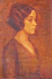 | Keywords: Czigány Női portré.jpg Artwork LangSwitch Portrait of a Woman Női portré 1911 oil canvas cardboard Size cm 46 66 5 Private collection object history credit line bottom right Bebének Czigány 1911 accession number http //www nagyhazi hu/index php Nagyházi Galéria és Aukciósház http //www nagyhazi hu/tetelek_nevmutato php id 137 tid 42757 page 4 Info http //www nagyhazi hu/kepek/167/379386 jpg Pic Pd-Art Paintings by Dezső Czigány in private collections 1911 paintings Self-portraits | ||||