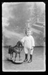 MAKE A MEME View Large Image Cooper Photographer, Strabane Date: c.1900 Original Format: Glass Plate Negative Description: Portrait of a young child with a toy horse. PRONI Ref: D1422/B76292/M/10 Copying and copyright: Please see www.proni.gov.uk/index/...