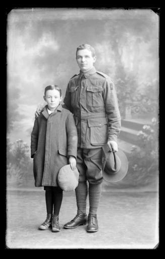 | Keywords: proni cooper 'h.f. cooper' hfcooper family 'family portrait' familyportrait genealogy ancestry ulster strabane 'northern ireland' northernireland 'county tyrone' countytyrone lifford 'county donegal' countydonegal blackandwhite groupshot people monochrome photo border outdoor black and white Creator: H.F. Cooper Photographer, Strabane Date: c.1915 Original Format: Glass Plate Negative Description: Standing portrait of a man and a boy c. 8 years. Possibly father and son. The man is wearing military uniform and is holding his hat, the boy is holding his cap. PRONI Ref: D1422~B76378_G_010~A Copying and copyright: Please see www.proni.gov.uk/index/research_and_records_held/copying_... For Copy Orders, contact: Email: proni@dcalni.gov.uk For fees and charges see: www.proni.gov.uk/index/about_proni/are_there_any_fees_and... Creator: H.F. Cooper Photographer, Strabane Date: c.1915 Original Format: Glass Plate Negative Description: Standing portrait of a man and a boy c. 8 years. Possibly father and son. The man is wearing military uniform and is holding his hat, the boy is holding his cap. PRONI Ref: D1422~B76378_G_010~A Copying and copyright: Please see www.proni.gov.uk/index/research_and_records_held/copying_... For Copy Orders, contact: Email: proni@dcalni.gov.uk For fees and charges see: www.proni.gov.uk/index/about_proni/are_there_any_fees_and... |