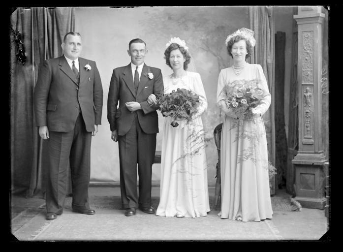 | Keywords: proni cooper h.f. cooper hfcooper family family portrait familyportrait genealogy ancestry ulster strabane northern ireland northernireland county tyrone countytyrone lifford county donegal countydonegal blackandwhite groupshot people monochrome photo border wedding black and white Creator: H.F. Cooper Photographer, Strabane Date: c.1935 Original Format: Glass Plate Negative Description: Wedding portrait - bride and groom, best man and maid of honour - all standing. PRONI Ref: D1422/B76545/E/12 Copying and copyright: Please see www.proni.gov.uk/index/research_and_records_held/copying_... For Copy Orders, contact: Email: proni@dcalni.gov.uk For fees and charges see: www.proni.gov.uk/index/about_proni/are_there_any_fees_and... Creator: H.F. Cooper Photographer, Strabane Date: c.1935 Original Format: Glass Plate Negative Description: Wedding portrait - bride and groom, best man and maid of honour - all standing. PRONI Ref: D1422/B76545/E/12 Copying and copyright: Please see www.proni.gov.uk/index/research_and_records_held/copying_... For Copy Orders, contact: Email: proni@dcalni.gov.uk For fees and charges see: www.proni.gov.uk/index/about_proni/are_there_any_fees_and... |