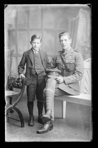Keywords: proni cooper h.f. cooper hfcooper family family portrait familyportrait genealogy ancestry ulster strabane northern ireland northernireland county tyrone countytyrone lifford county donegal countydonegal military uniform child posed formal chair furniture early 20th century early20thcentury suit knee socks kneesocks blackandwhite people groupshot monochrome photo border surreal wedding black and white Creator: H.F. Cooper Photographer, Strabane Date: c.1920 Original Format: Glass Plate Negative Description: Portrait of a soldier in uniform sitting next to a standing boy (c.10 years). PRONI Ref: D1422/B76545/K/13 Copying and copyright: Please see www.proni.gov.uk/index/research_and_records_held/copying_... For Copy Orders, contact: Email: proni@dcalni.gov.uk For fees and charges see: www.proni.gov.uk/index/about_proni/are_there_any_fees_and... Creator: H.F. Cooper Photographer, Strabane Date: c.1920 Original Format: Glass Plate Negative Description: Portrait of a soldier in uniform sitting next to a standing boy (c.10 years). PRONI Ref: D1422/B76545/K/13 Copying and copyright: Please see www.proni.gov.uk/index/research_and_records_held/copying_... For Copy Orders, contact: Email: proni@dcalni.gov.uk For fees and charges see: www.proni.gov.uk/index/about_proni/are_there_any_fees_and... |