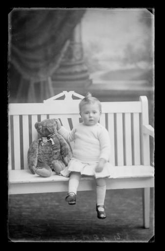 Keywords: proni cooper h.f. cooper hfcooper family family portrait familyportrait genealogy ancestry ulster strabane northern ireland northernireland county tyrone countytyrone lifford county donegal countydonegal child children infant baby teddybear seated blackandwhite people monochrome photo border surreal black and white Creator: H.F. Cooper Photographer, Strabane Date: c.1920 Original Format: Glass Plate Negative Description: Portrait of an infant girl (c.1 year) seated on a bench beside a teddy bear PRONI Ref: D1422/B76545/L/3 Copying and copyright: Please see www.proni.gov.uk/index/research_and_records_held/copying_... For Copy Orders, contact: Email: proni@dcalni.gov.uk For fees and charges see: www.proni.gov.uk/index/about_proni/are_there_any_fees_and... Creator: H.F. Cooper Photographer, Strabane Date: c.1920 Original Format: Glass Plate Negative Description: Portrait of an infant girl (c.1 year) seated on a bench beside a teddy bear PRONI Ref: D1422/B76545/L/3 Copying and copyright: Please see www.proni.gov.uk/index/research_and_records_held/copying_... For Copy Orders, contact: Email: proni@dcalni.gov.uk For fees and charges see: www.proni.gov.uk/index/about_proni/are_there_any_fees_and... |