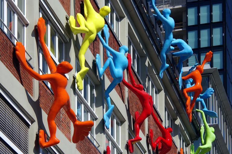 Keywords: düsseldorf germany building structure facade architecture figures spiderman unique humorous interesting outside city cities urban