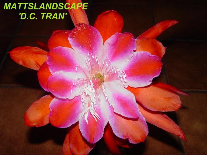 Keywords: D.C. TRAN WATERMARKED.JPG en Epiphyllum Hybrid CV 'D C TRAN' own Mattslandscape 2006-04-22 Epiphyllum hybrids Red and white flowers Watermark
