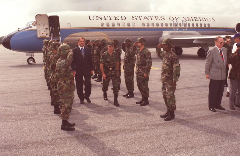 | Keywords: DA-SC-98-02052.JPEG en DA-SC-98-02052 Members of the 3d Infantry Division M salute as Maj Gen John W Hendrix commander 3d Infantry Division M escorts the Honorable Adolf Ogi Switzerland's minister of defense from his aircraft http //www defenseimagery mil/imagery html guid 3f73161865ea91d0b79768e4f037fac64d7c89fc Mike Lemke DAC 1996-10-17 PD-USGov Adolf Ogi 3rd Infantry Division United States | ||||