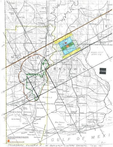 | Keywords: Dab295.jpeg Mobile Alabama Region USGS map with KYMAK overlay Mobile Alabama KYMAK Comprehensive Regional Master Plan Details on Summary page The Mobile Region map is a part of a larger regional plan The straight orange line is in the major zone of development which extends to New Orleans and points beyond The irregular brown line shows expected continuous growth proposed in 1965 of the City of Mobile; the dotted green line is the current Mobile city limits KYMAK overlay for an orderly and systematic plan Municipal units are about 12 miles square the size of four townships and are laid out on a bias to avoid confusion with other survey lines; thus oriented it is an economy toward building life extension Unit perimeters are rights-of-ways reserved as open space for major transportation routes which can be developed as the need arises The Mo del-city shown at the top right can be adapted to any unit but would apply only to new development particularly of streets and subdivisions; old development remains as long as it is useful or desirable - yellow zone is suburban based on Frank Lloyd Wright's Broadacre City concept blue is residential green is agricultural the red square is the executive compound; the orange is the urban core dotted green is public land for wild-life preservation Suggested population densities and distribution and other details are on the KYMAK Model City page 2013-01-25 own MyName Dab295 <span class signature-talk >talk</span> 17 05 25 January 2013 UTC Cc-zero Maps of Alabama |
