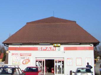 Keywords: Dach mansardowy.jpg en Mansard roof supermarket shop; in Poland pl dach mansardowy sklep market own Romano12 2009-04-01 Heřmanice Liberec District Mansards SPAR shops in Poland