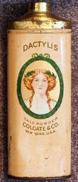 Keywords: Dactylis talc powder tin, Cogate & Co, pic4.JPG Very old product that is not produced and not sold any more own 2013-12-22 13 06 06 Alf van Beem CC-zero Trademarked Talcum powder tins