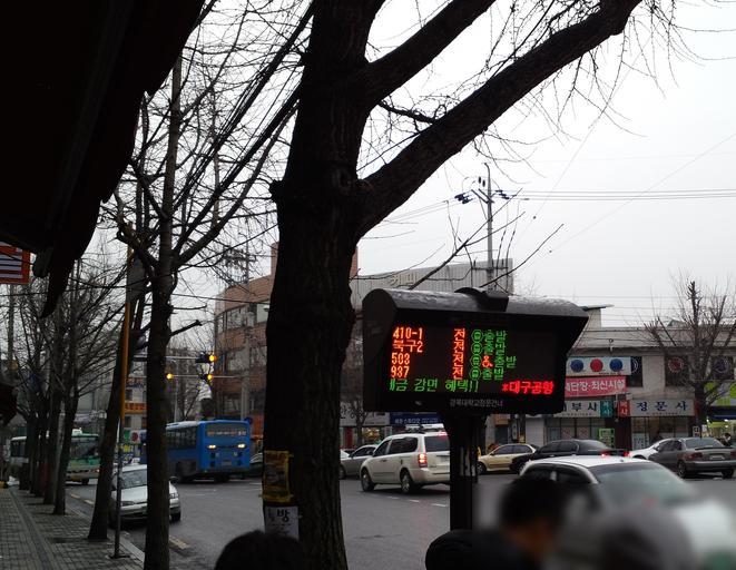 Keywords: DaeguBMS 경북대학교정문건너 정류소.jpg ko 경북 학교정문건너 정류소에 설치 내버스 도착안내기 2012-04-16 own Ktneop cc-zero Uploaded with UploadWizard Buses in Daegu Information boards at bus stations in South Korea