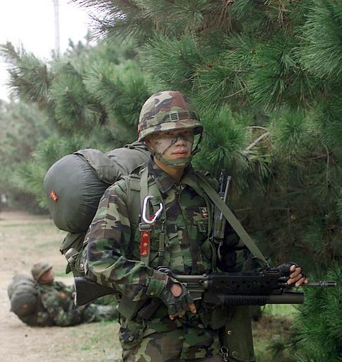 Keywords: Daewoo K2 rifle DM-SD-01-05735.jpg Republic of Korea ROK Marine Beck J Kim 1st Battalion 7th Marine regiment takes a break from his ten mile hump during Korean Intergrated Training Program KITP KITP is a one and a half month joint training in conjunction with the Republic of Korea ROK Marines that takes place in Pohang Korea Marine Expeditionary Camp Pohang MEC-P He is armed with a K2 rifle http //www dodmedia osd mil/DVIC_View/Still_Details cfm SDAN DMSD0105735 JPGPath /Assets/2001/Marines/DM-SD-01-05735 JPG 2000-11-26 LCPL MARCUS D HENRY public domain PD-USGov Republic of Korea Marine Corps Daewoo K2 with K201 Males with M203 M1 helmets |