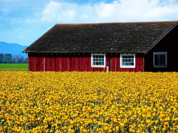 Keywords: daffodils spring flower garden gardening spring flower environment flower garden barn blossom growth nature outdoors bloom colorful season grow field springtime color sky landscape