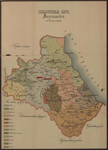 | Keywords: Daghestan ethnographic and administrative map 1895.jpg Схематическая ка та Дагестанской области Sketch map of Daghestan Region 1895 П иложение к «Памятная книжка Дагестансокй области Издана по аспо яжению г военного губе нато а Дагестанской области Составил Е И Козубский С т емя по т етами и схематическою ка тою Теми -Хан-Шу а Русская типог афия В Со окина 1895 » Annex to The Memorial Book of Daghestan Region Issued by the order of the Daghestan Region Military Governor With three portraits and sketch map Temir-Khan-Shura V M Sorokin's Russkaya Tipografiya 1895 Е И Козубский 1851 1911 PD-old Uploaded with UploadWizard Maps of Dagestan Ethnographic maps in Russian 1895 maps Old maps of Viceroyalty of the Caucasus |