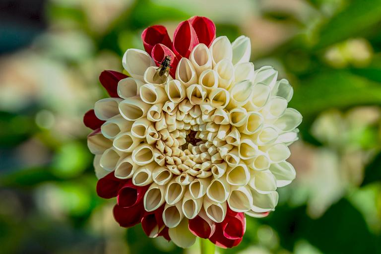 Keywords: dahlia flower composites dahlia garden blossom bloom garden plant plant bi color white-pink summer nature in the garden petals fly insect