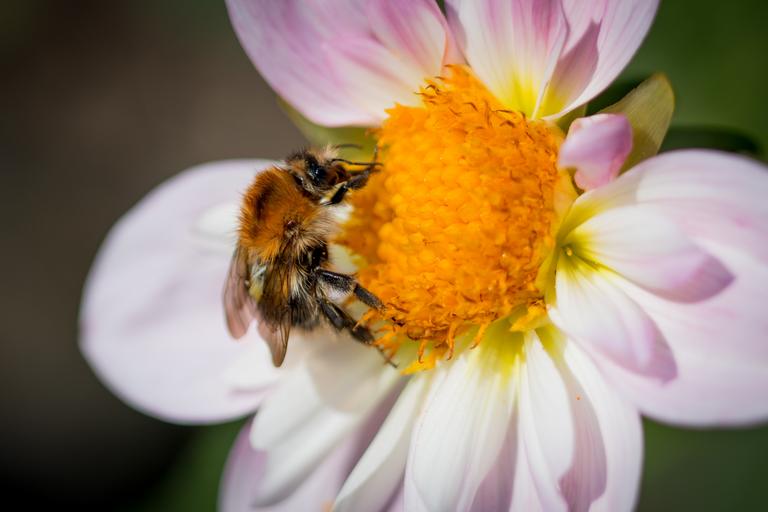 Keywords: dahlia hortensis hummel blossom bloom macro insect flower animal close dahlia neck frills-dahlia