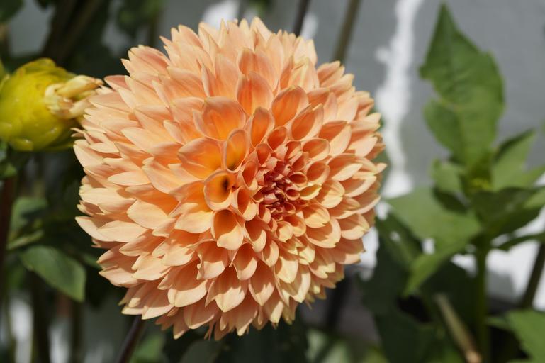 Keywords: dahlia orange ball globose blossom bloom flower dahlia garden autumn ornamental flower flower garden garden bloom late summer