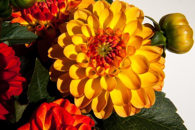 Keywords: dahlias dahlia geothermal plant composites red orange yellow flower garden ornamental flower blossom bloom flower bud