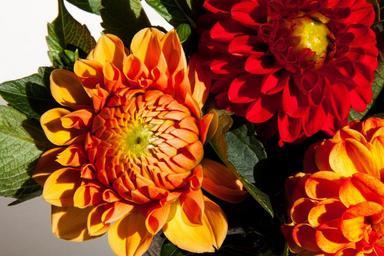 Keywords: dahlias dahlia geothermal plant composites red orange yellow flower garden ornamental flower blossom bloom flower