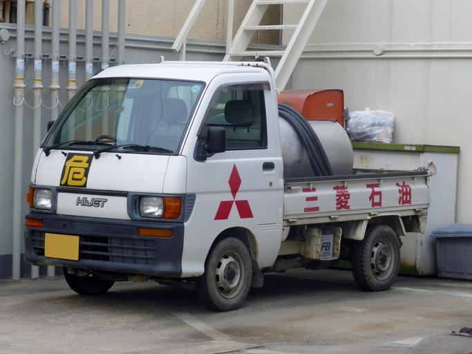 Keywords: Daihatsu HIJET TRUCK of Mitsubishi Oil.JPG ja 三菱石油の イハツ・ハイゼットトラックを撮影 2014-04-16 15 58 15 own Tokumeigakarinoaoshima cc-zero Uploaded with UploadWizard Daihatsu Hijet 8th generation JX Nippon Oil Energy