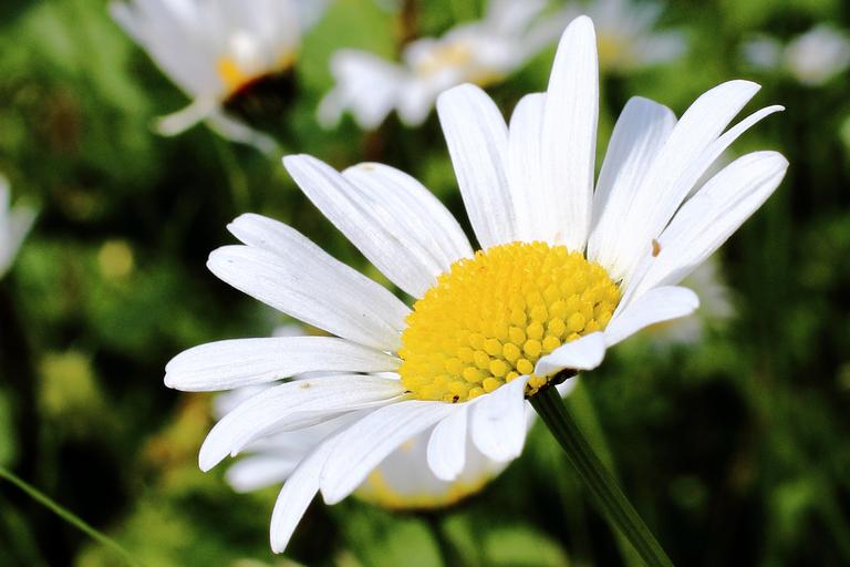Keywords: daisy blossom bloom white yellow inflorescence petals composites pointed flower summer meadow