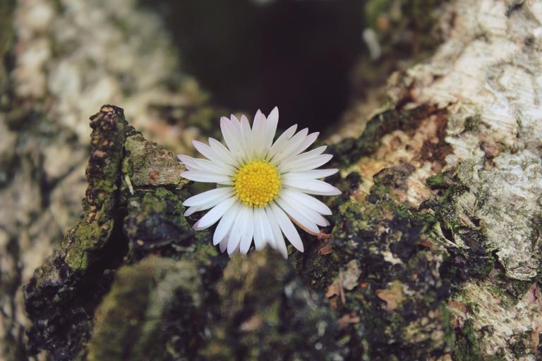 Keywords: daisy flower blossom bloom plant nature close white pointed flower flora bloom yellow garden birch tree background bark autumn winter log wood tree bark