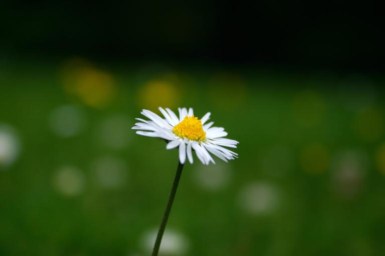 Keywords: daisy flower lawn grass yellow bloom flora botanical green white flower plant nature bright lonely freshness field environment day summer garden green field