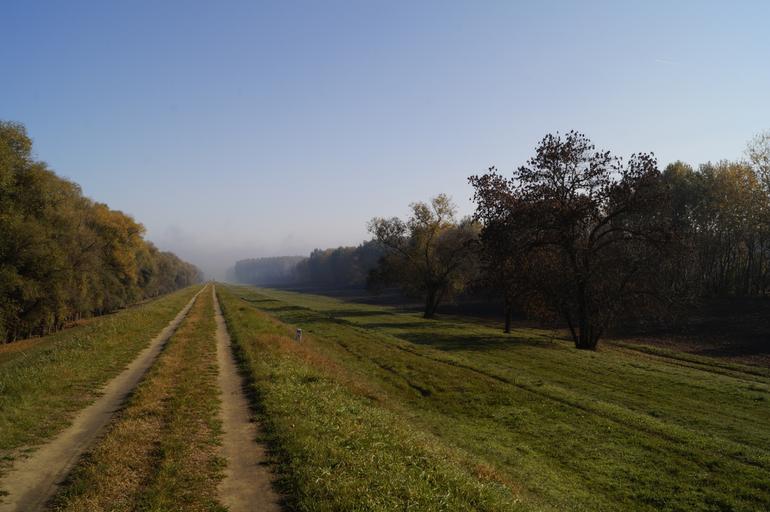 Keywords: dam flood zone road trees forest autumn nature wood walk landscape sunshine tour