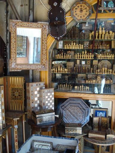 Keywords: Damascene antique shop.JPG حل دمشقي للتذكارات في سوق المهن اليدوية Damascene antique shop in the hand craft market Own 2007 Shops in Damascus 2007 in Damascus