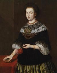 | Keywords: Dame mit Buch und Nelken (süddeutsch 17 Jh).jpg Bildnis einer Dame mit einem Buch und Nelken rückseitig von der ursprünglichen Leinwand übertragen schwer zu lesende Beschriftung century 17 Oil on canvas cm 100 78 unknown http //www dorotheum com other versions PD-old-100 17th-century unidentified painters 17th-century portrait paintings location missing 17th-century portrait paintings of unidentified women 17th-century portrait paintings not categorised by year 17th-century oil portraits of standing women at three-quarter length Images from Dorotheum Portrait paintings of women holding books Portraits holding carnation Tables in portrait paintings |