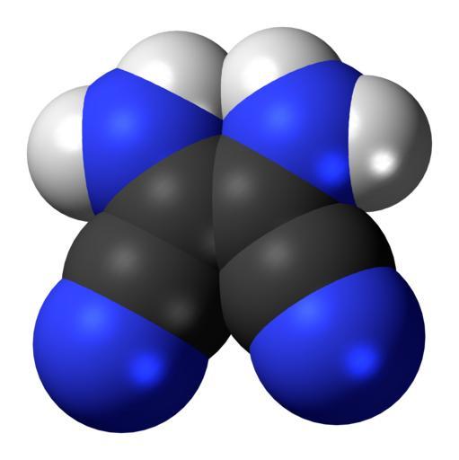 | Keywords: DAMN-3D-spacefill.png Space-filling model of the diaminomaleonitrile molecule also known as DAMN an experimental nitrogen compound Colour code 505050 Carbon C black<br> F0F0F0 Hydrogen H white<br> 3C50FA Nitrogen N blue<br> 2011-02-05 own DS Visualizer Jynto talk Ball-and-stick version cc-zero Nitriles Alkene derivatives Primary amines Images by Jynto Space-filling models |