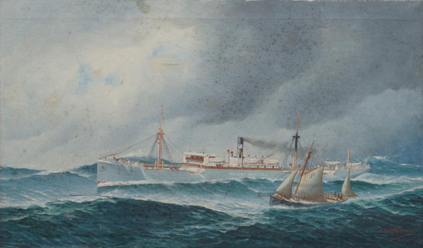 Keywords: Dampfschiff Helene Menzell 1908.jpg John Henry Mohrmann 1857-1916 date 1908 oil on canvas cm 60 100 object history credit line Antwerpen accession number http //www auktionshaus-stahl de/ Auktionshaus Stahl PD-old-auto-1923 1916 John Henry Mohrmann Paintings of ships Helene Menzell ship 1903 Ships in art of Germany 1908 paintings Pilot boats Images from Auktionshaus Stahl