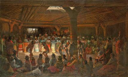 | Keywords: Dance at a Subterranean Roundhouse at clear Lake, California, Jules Tavernier.jpg en Dance at a Subterranean Roundhouse at clear Lake California by Jules Tavernier 1878 oil on canvas 48 x 72¼ in Metropolitan Museum of Art accession 2016 135 http //www wolfcreekarcheology com/images/1876DanceHouseTavernier jpg Lake Country Archiology Jules Tavernier 1878 Paintings of Native Americans by Jules Tavernier Clear Lake California American paintings in the Metropolitan Museum of Art PD-old-100 | ||||