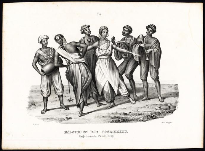 | Keywords: Dancing girls of Pondicherry.jpg en Dancing girls of Pondicherry from 'Naturgeschichte und Abbildungen des Menschen der verschiedenen Rassen und Stamme nach den neuesten Entdeckungen und vorzuglichsten Originalien ' by Heinrich Rudolf Schinz published in Basel by Honeggerschen Lithographischen Anstalt 1836-45 Source ebay Jan 2012 1836-45 http //www columbia edu/itc/mealac/pritchett/00routesdata/1800_1899/women/nautchearly/nautchearly html Heinrich Rudolf Schinz PD-Old Uploaded with UploadWizard Historical images of Puducherry city |